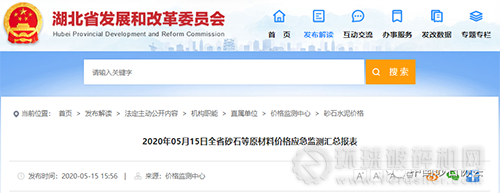 2020年06月12日湖北發改委價格監測中心發布全省砂石等原材料價格應急監測匯總報表,河砂、機制砂價格較5月份略有上浮。