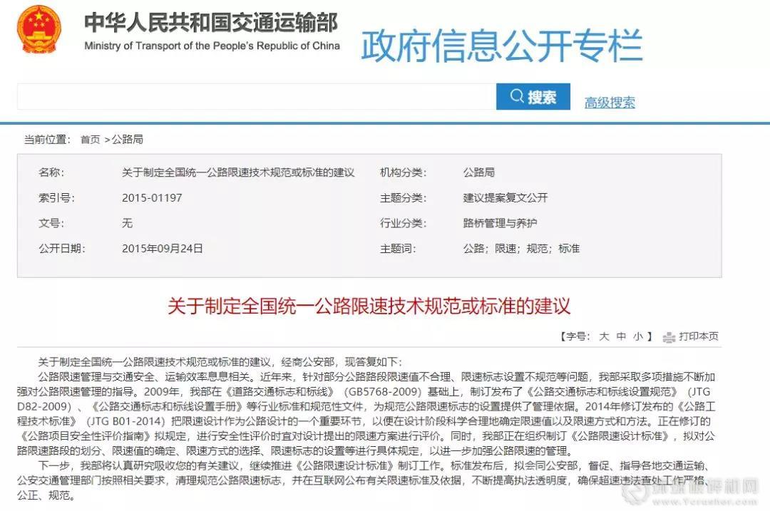 從2015年底,交通部就關于限速不規范問題做出了研究,提出全國統一公路限速的新設想。