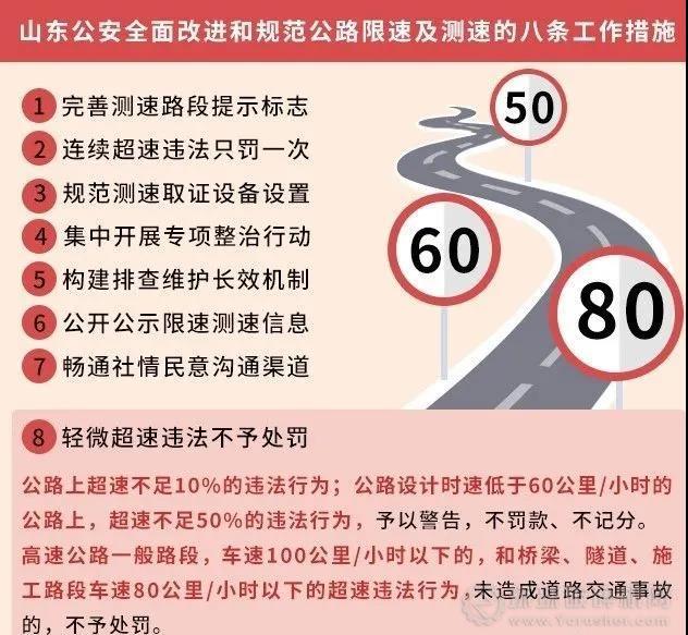 山東省公安廳曾出臺《全面改進和規范公路限速及測速八條工作措施》,對高速公路限速問題做出了規范,限速值與前后差值超過20公里/小時的,提前預告或逐級限速,輕微違法不予處罰。