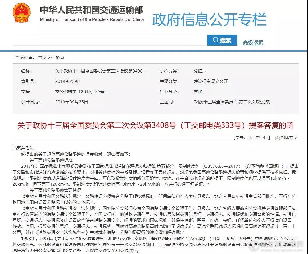 到2019年的政協十三屆全國委員會第二次會議中,政協馮委員指出了“斷崖式降速”“忽高忽低式限速”的現狀,提出了規范高速公路限速的提案。