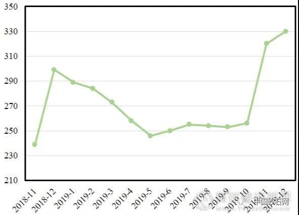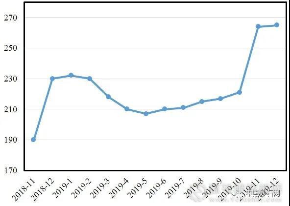 圖5 廣東省2018年11月~2019年12月海砂購進價格走勢圖