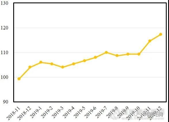 圖3 廣東省2018年11月~2019年12月建筑碎石購進價格走勢圖