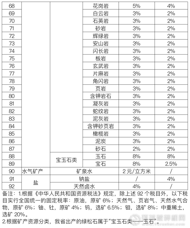 選礦的,具體適用稅率按照《湖北省資源稅稅目稅率表》執行。