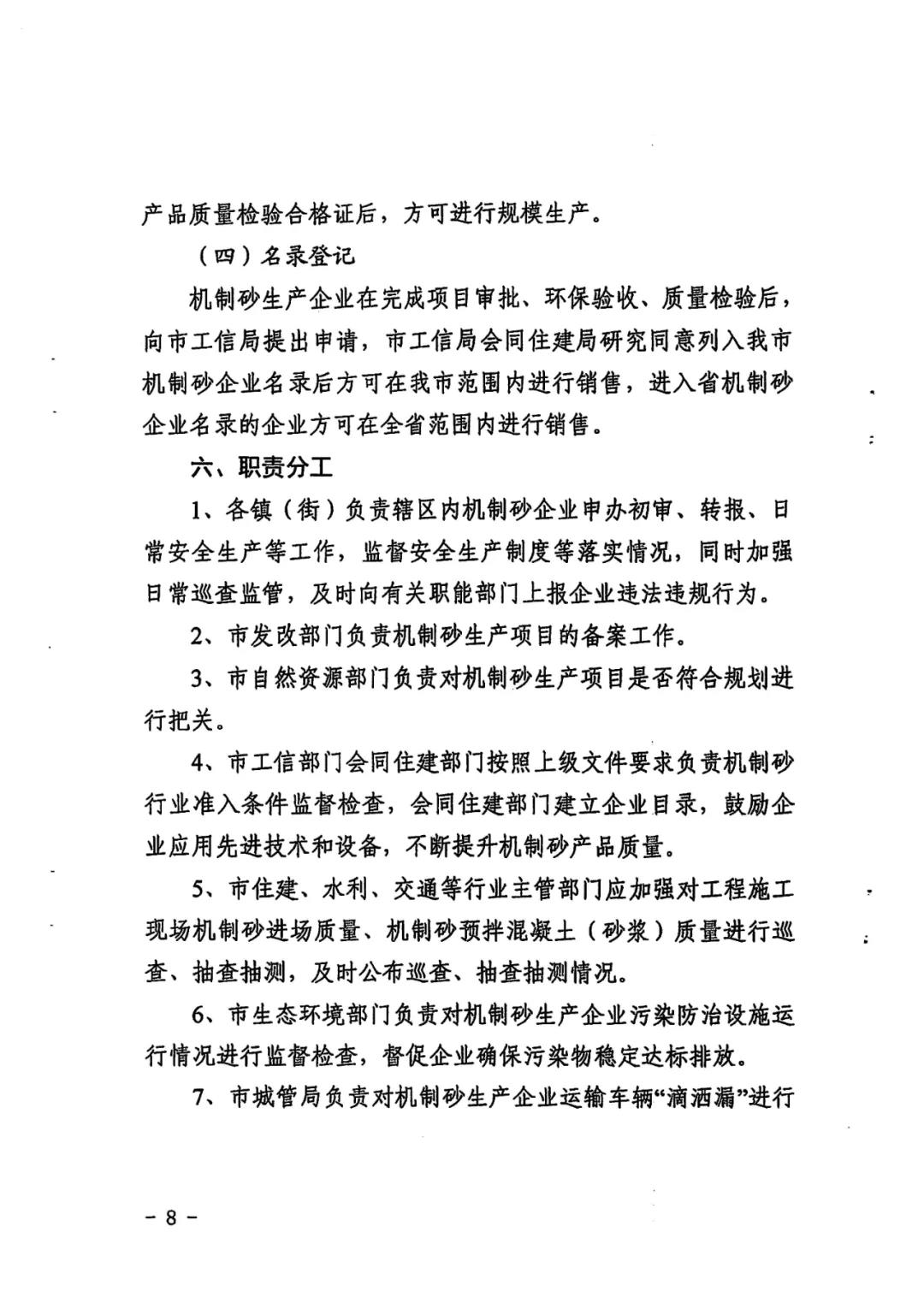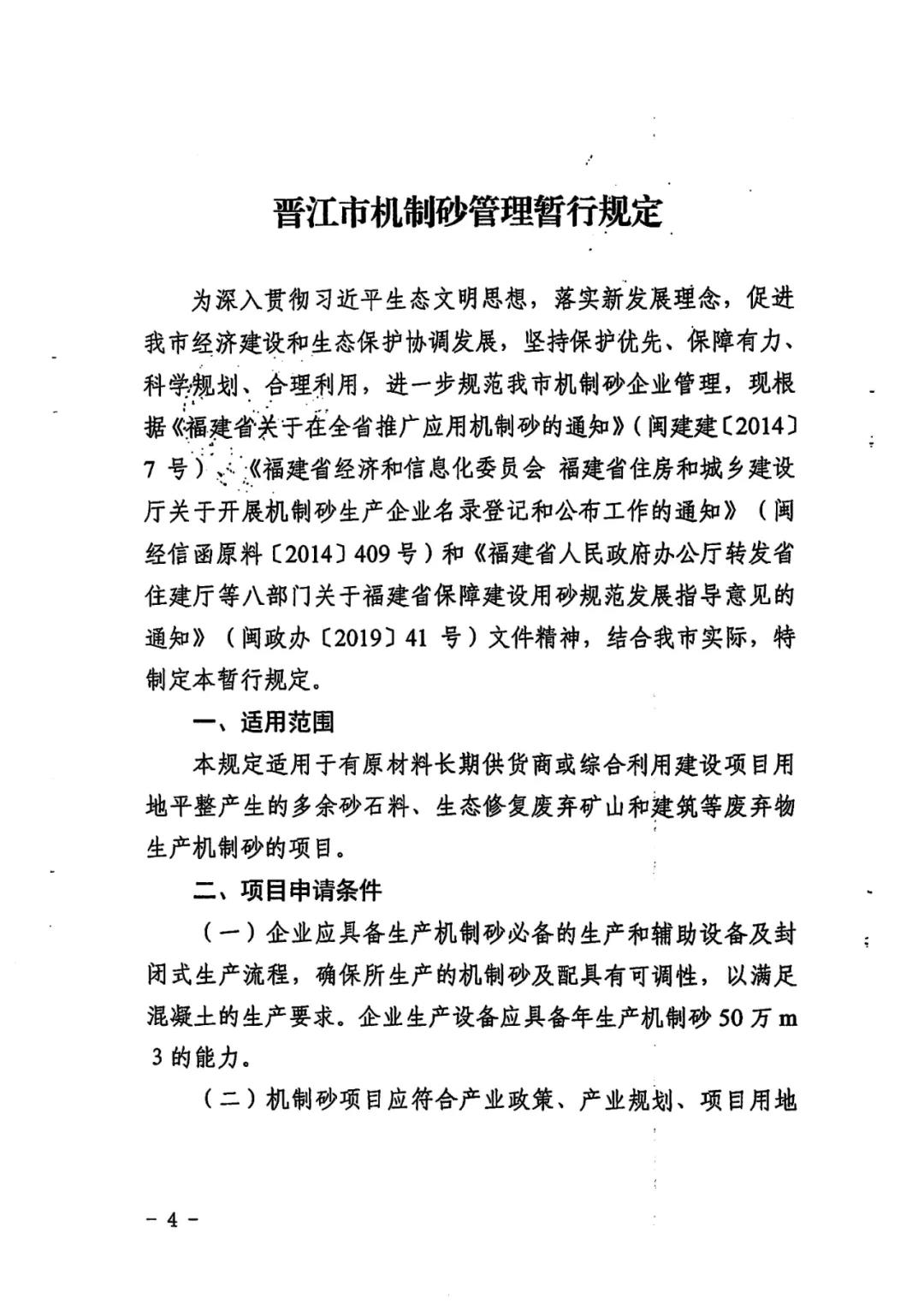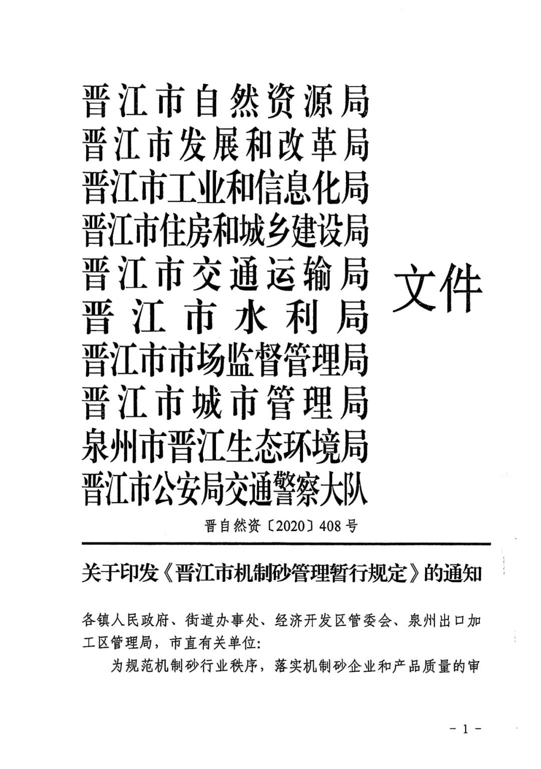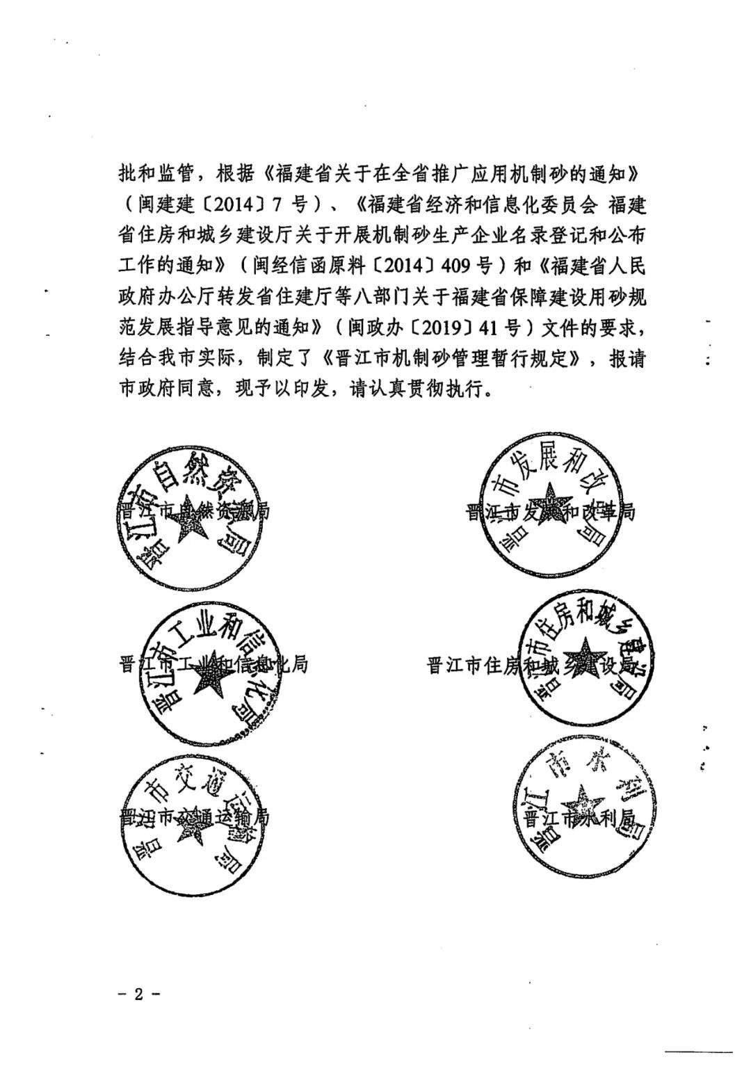 近日,從福建省晉江市自然資源局獲悉,該局聯合發改、工信、住建、交通、水利、市場監管、城管、生態環境、交警大隊等部門,共同出臺《晉江市機制砂管理暫行規定》(以下簡稱《規定》),進一步規范機制砂行業秩序,落實機制砂企業和產品質量的審批和監管。