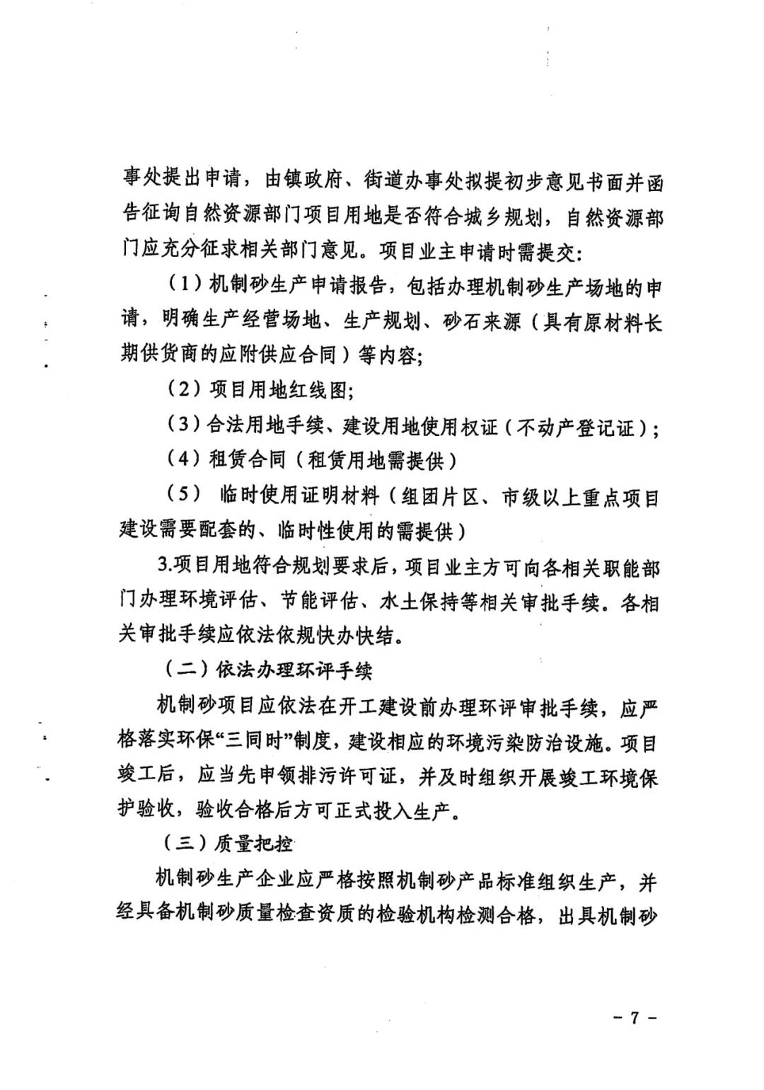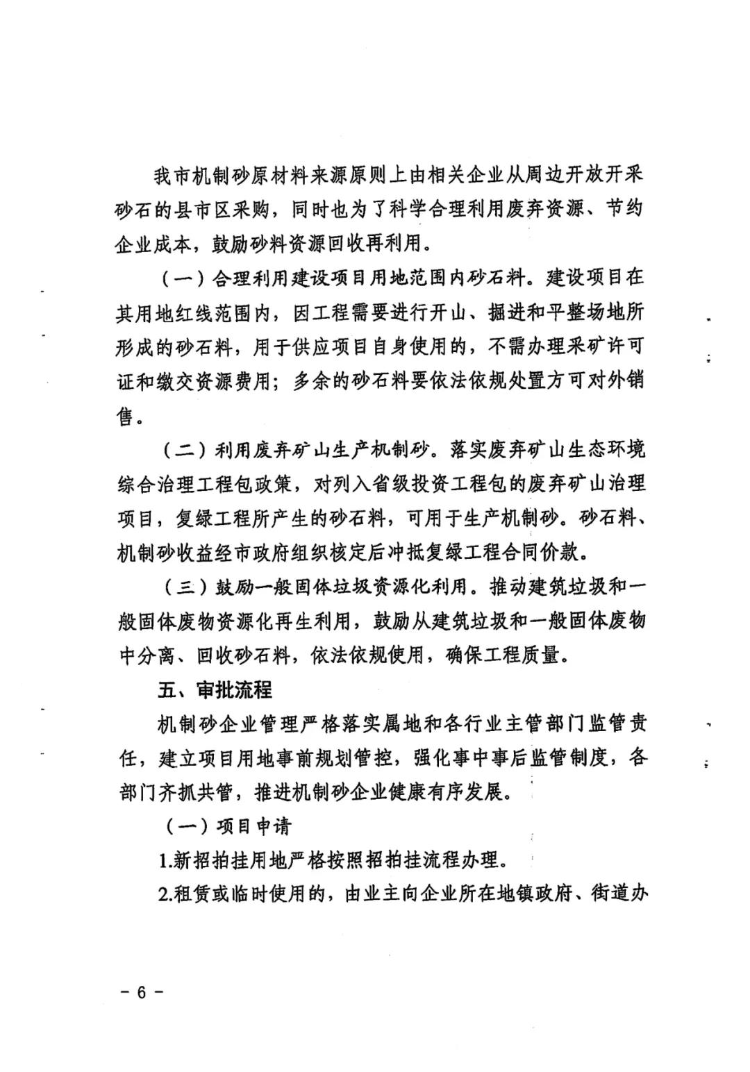礦山和建筑等廢棄物生產機制砂的項目。企業在申請項目的過程中,應具備生產機制砂必備的生產和輔助設備及封閉式生產流程;機制砂項目應符合產業政策、產業規劃,項目用地應取得合法的工業用地手續,原則上不新增建設用地。