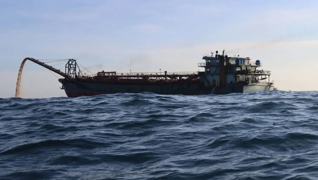 近日,中國海警局直屬第三局在臺灣淺灘附近海域成功查獲一起涉嫌非法采砂案,抓獲涉案人員12名,查扣涉案船舶1艘、海砂約1500噸。