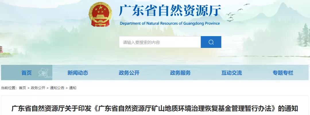 近日,廣東省自然資源廳印發《廣東省自然資源廳礦山地質環境治理恢復基金管理暫行辦法》。