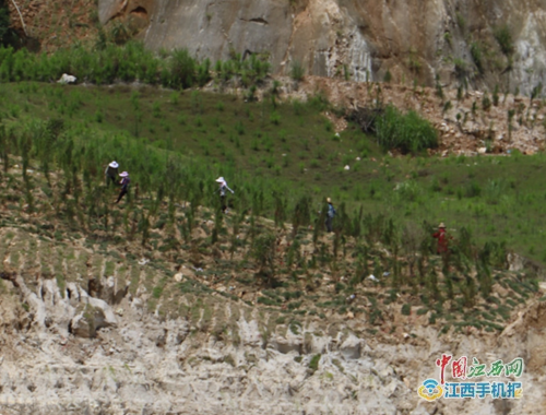 2020年7月,在袁州區新坊鎮的一處礦山,工人們正在開展生態修復工作
