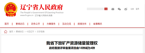 遼寧省下放礦產資源儲量管理權,政府直接評審備案項目由18種減為4種