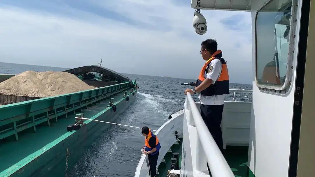 非法涉海運輸內河船往往不配合執法,經常采取聯合闖關,甚至沖撞海巡艇等行為對抗執法,查扣難度較大。為此,本次行動特別調派了無人機對其進行空中跟蹤,調派了拖輪協助攔截船舶。