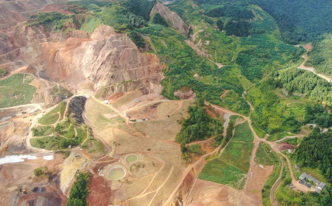 大寶山已進行生態修復和即將進行生態修復的不同片區涇渭分明(8月4日無人機照片)