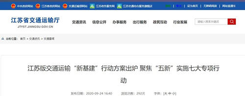 9月24日,江蘇省交通運輸廳出臺《江蘇省交通運輸新型基礎設施建設行動方案》,計劃投入33億元,圍繞信息基礎設施、智慧交通基礎設施、智慧運輸服務、行業創新基礎設施四大領域,聚焦“新網絡、新設施、新集群、新平臺、新應用”五新目標,提出了七大專項行動、27項具體任務事項,近期將重點實施97個項目,加快構建新型交通運輸基礎設施體系,推動交通運輸向數字化、網絡化、智能化發展,全面支撐現代綜合交通運輸體系建設。