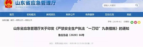 山東省發布的《嚴禁安全生產執法“一刀切”九條措施》通知明確,原則上不得要求企業停工停產。生產安全事故發生后,原則上不得采用“一家企業發生事故、同類其他企業停產整改”簡單化處理方式。