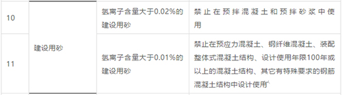 文件對氯離子含量大于0.02%、以及0.01%的建設用砂的應用范圍作了限定!