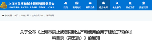 近日,上海市住建委官網發布了《關于公布<上海市禁止或者限制生產和使用的用于建設工程的材料目錄(第五批)>的通知》。