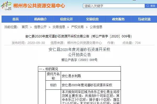 湖南安仁河道采砂權拍賣溢價644% 單價達164元/噸