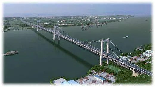建設規模:本項目路線全長7.9km,高速高路標準,雙向六車道;南金公路全長3.9km,雙向六車道。跨江部分采用兩橋合建的形式,主橋橋型為三塔四跨雙層懸索橋,主跨跨徑800+800m。