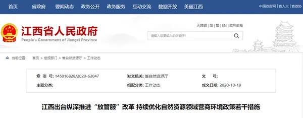 為持續深化“放管服”改革,推進“五型”政府建設,充分釋放改革創新活力,助力打造江西“四最”營商環境,10月13日,江西省自然資源廳印發《縱深推進“放管服”改革 持續優化自然資源領域營商環境政策措施的通知》(以下簡稱《通知》),為服務江西高質量跨越式發展提供有力支撐。