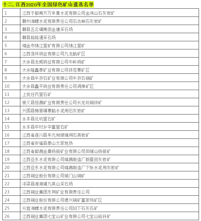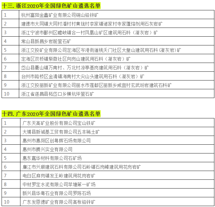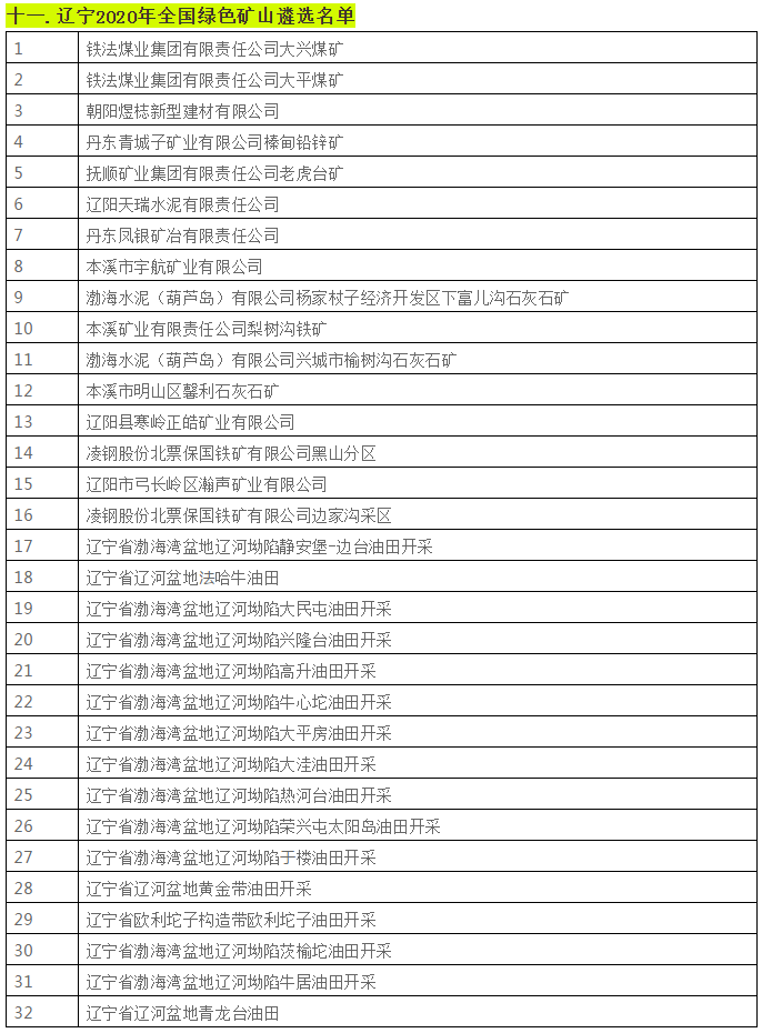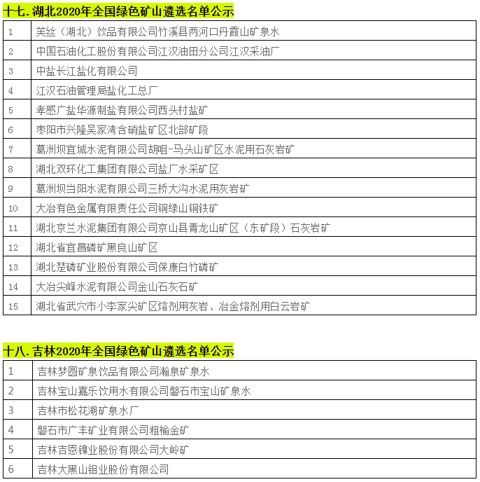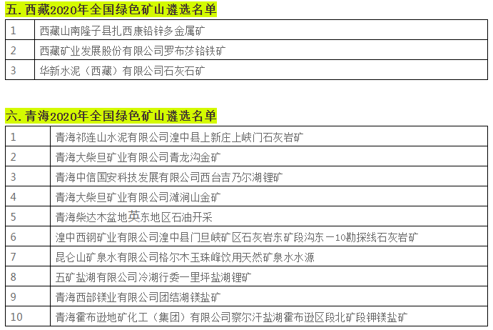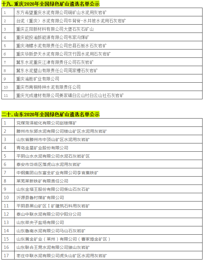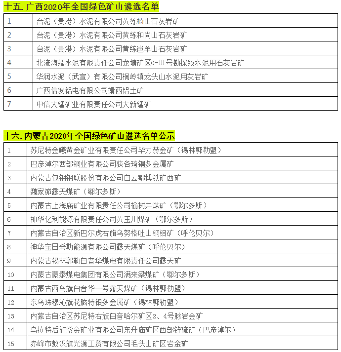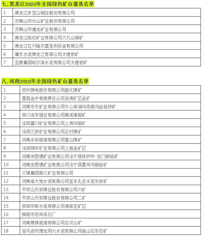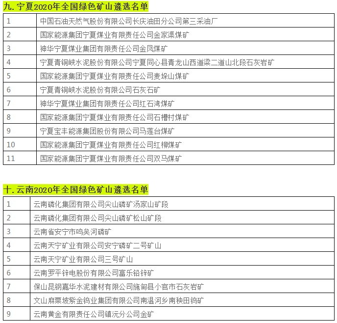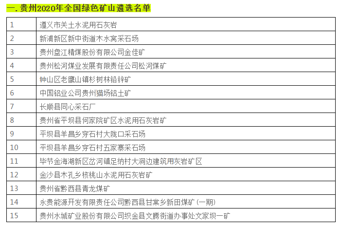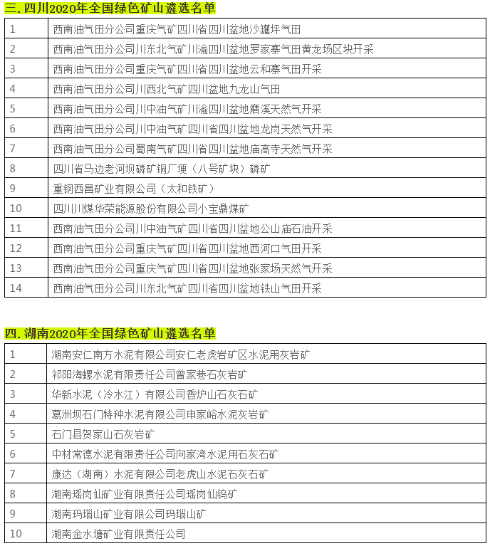據不完全統計,近日,貴州省、陜西省、四川省、湖南省等二十個省份已相繼遴選出2020年全國綠色礦山名單。具體名單如下: