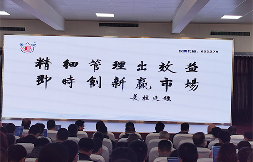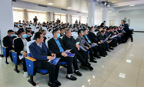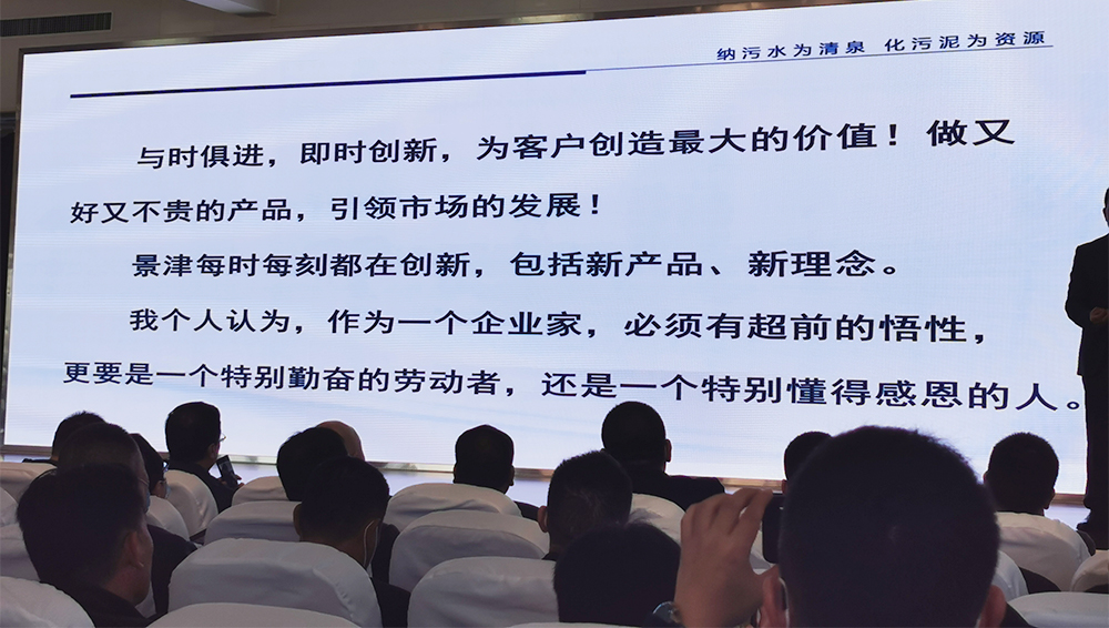參觀結束后,砂石及裝備企業精細化管理制度創新經驗交流會在景津召開,與會人員就企業管理、技術交流等問題進行了現場交流。會上董事長姜桂廷題字“精細管理出效益,即時創新贏市場”,并暢談企業管理經營之道。
