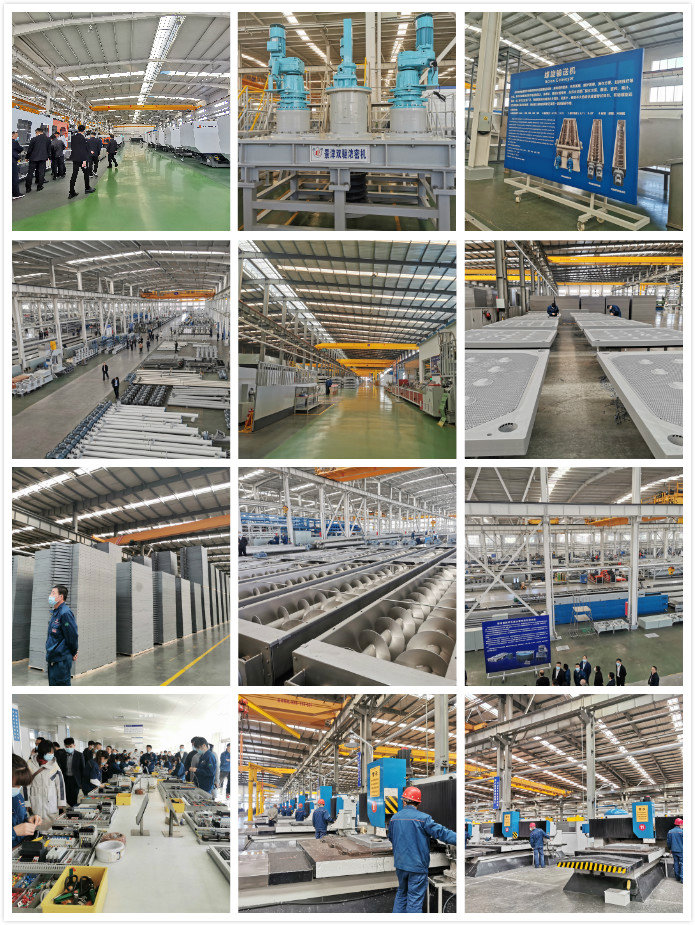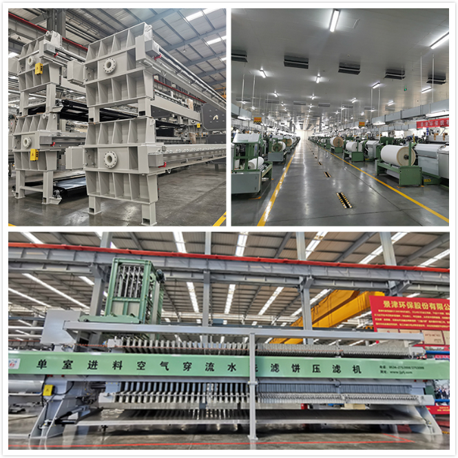 據董事長姜桂廷介紹,景津自主研發的過濾成套裝備包括壓濾機、振動離心機、攪拌機、