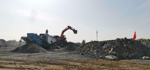 破碎設(shè)備,重500噸左右,每天可處理約500立方米的廢料,是我市爭創(chuàng)“無廢城市”的一員猛將。