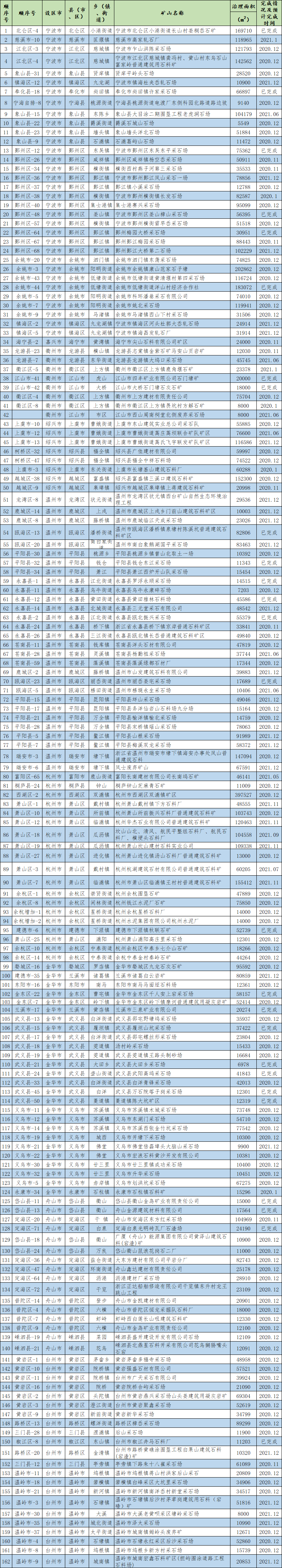10月27日,浙江省自然資源廳印發《重點治理礦山治理整改方案》,方案將積極推進第二輪中央環保督察發現《浙江省礦山生態環境保護與治理規劃(2016—2020 年)》確定的531 處重點治理礦山治理進度較慢問題的整改工作。截至目前,還剩余136座礦山未治理,詳細名單及整治計劃見文末!