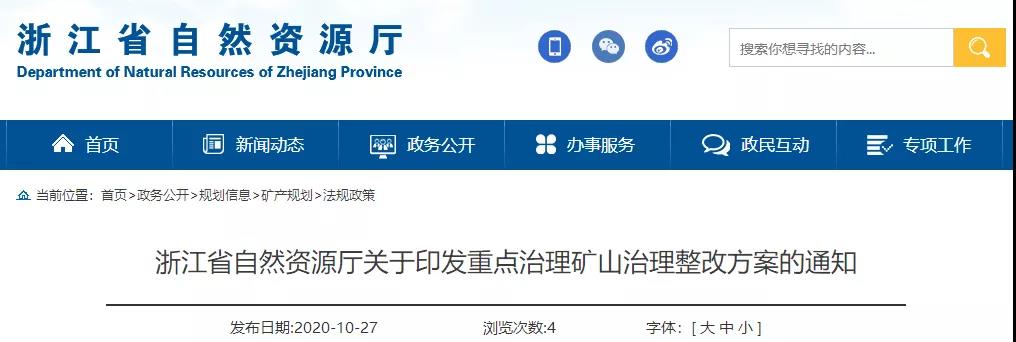 為切實抓好第二輪中央環保督察發現的《浙江省礦山生態環境保護與治理規劃(2016-2020 年)》(以下簡稱“規劃”)確定的531 處重點治理礦山治理進度較慢問題的整改工作,省自然資源廳制定了整改方案,現將整改方案印發給你們,請結合實際,嚴格貫徹執行。