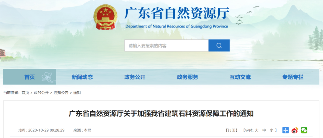 昨日(29日),廣東省自然資源廳重磅印發《廣東省自然資源廳關于加強我省建筑石料資源保障工作的通知》(下文簡稱《通知》,全文詳見文末)。自2020年3月25日《通知》開始征求社會公眾意見,4月20日征求意見結束后,再經過漫長的6個月,廣東省人民政府終于同意正式印發,《通知》12月1號開始正式實施,有效期5年!