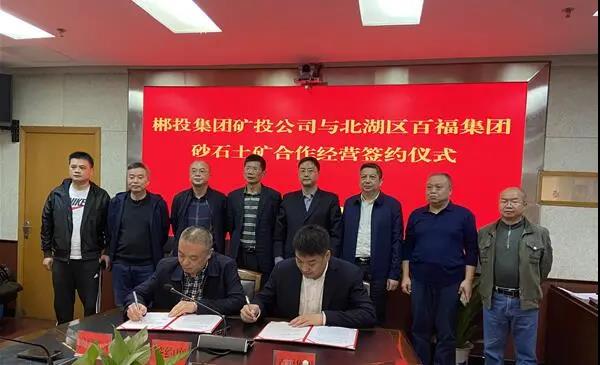10月30日上午,郴投集團礦投公司與北湖區百福集團在郴州市政府八樓會議室舉行砂石土礦合作經營簽約儀式,雙方將組建合資公司,共同參與競拍北湖區轄區內新設或擴界的砂石土礦采礦權,依法依規參與北湖區現有砂石土礦資源的整治整合,并對取得的砂石土礦資源進行開發利用。