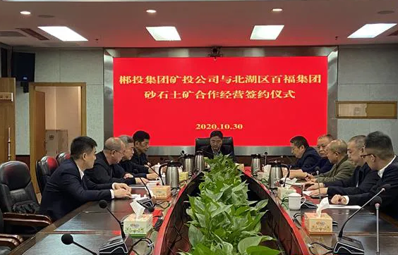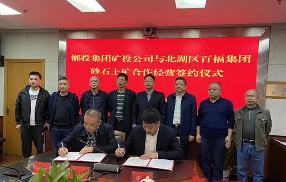 10月30日上午,郴投集團礦投公司與北湖區百福集團在郴州市政府八樓會議室舉行砂石土礦合作經營簽約儀式,雙方將組建合資公司,共同參與競拍北湖區轄區內新設或擴界的砂石土礦采礦權,依法依規參與北湖區現有砂石土礦資源的整治整合,并對取得的砂石土礦資源進行開發利用。
