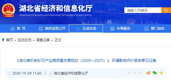近日,湖北省經濟和信息化廳發布《湖北省機制砂石產業高質量發展規劃(2020—2025)》 環境影響評價報告意見征集,規劃中提到“到2025年,全省機制砂石年產能達到9.9億噸以上,其中機制砂年產能4億噸以上。在全面滿足省內砂石需求穩定市場的同時,每年向長江下游輸出1至2億噸,填補長三角地區砂石缺口,實現我省砂石產業的可持續性發展。”