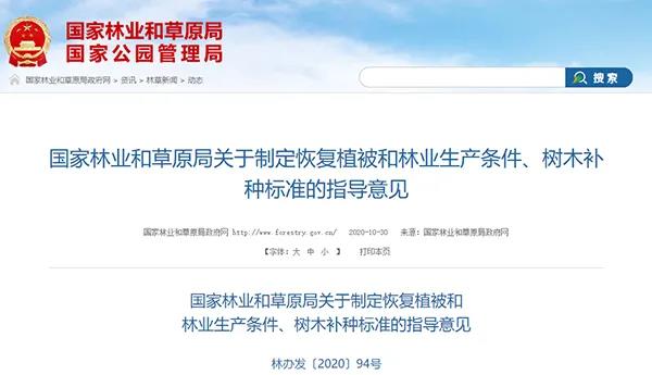 10月30日,為規范恢復植被和林業生產條件、樹木補種的標準,國家林業和草原局根據修訂后的《中華人民共和國森林法》,提出《關于制定恢復植被和林業生產條件、樹木補種標準的指導意見》。