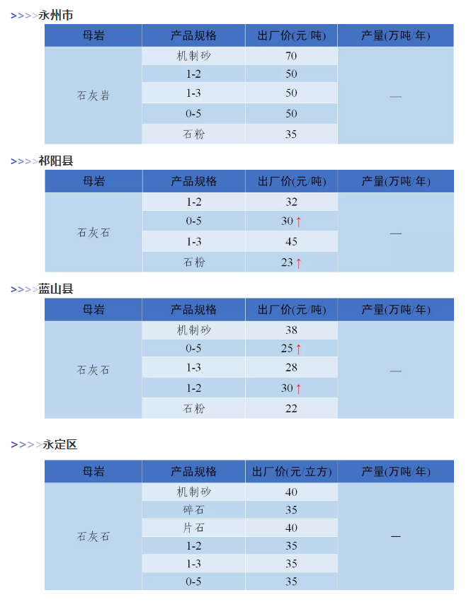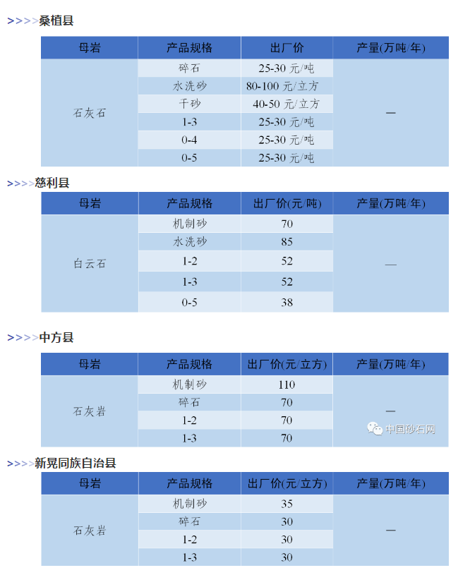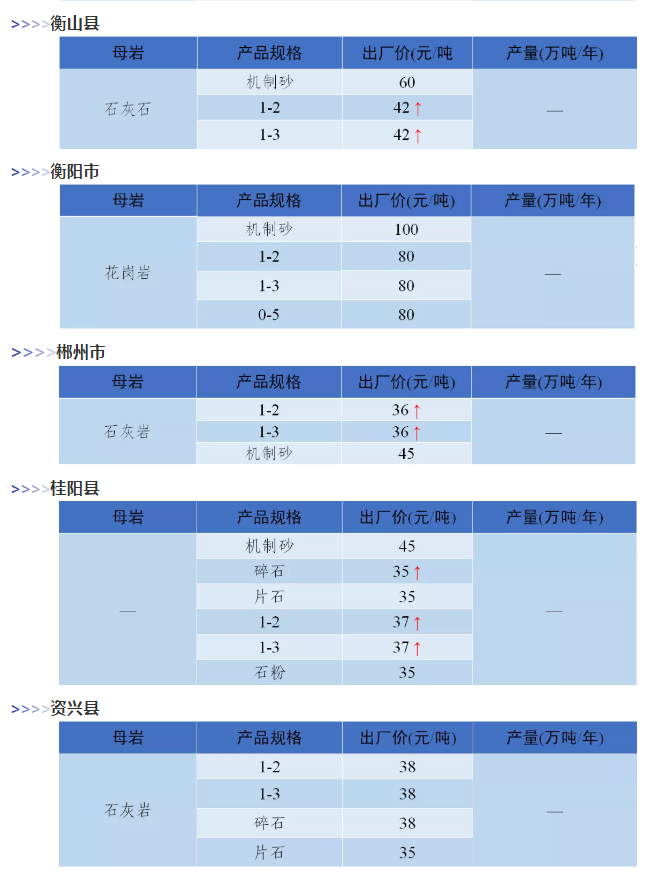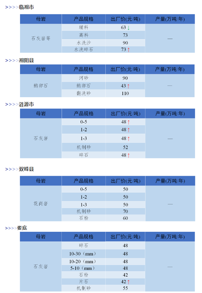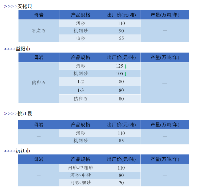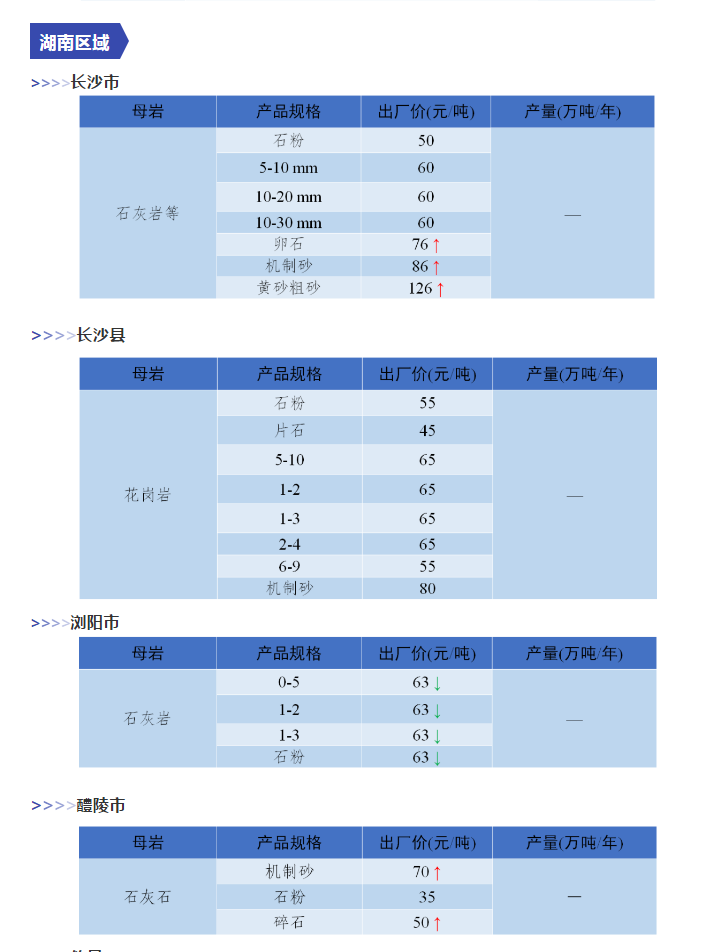 ◇ 湖南省部分地區砂石價格呈下跌趨勢,醴陵市機制砂出廠價66元/噸,湘潭市機制砂出廠價87元/噸,益陽市機制砂出廠價105元/噸,河沙出廠價125元/噸。