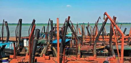 為此,江蘇省水利廳開展兩方面的重點工作。一方面加強船舶檢查清理,有效管控“三無”(無船名船號、無船舶證書、無船籍港)采砂船,落實采運管理“四聯單”制度,嚴控新建和改建采砂船。對船廠私自改裝隱形采砂船情況,省水利廳以政務信息形式上報省政府,省政府主要領導、分管領導進行批示,要求工信部門處理。南京、揚州等地工信、市場監管部門等聯合部署,禁止非法改裝采砂船。鎮江市安監部門以安全執業資格為抓手,依法查處擅自維修、改裝采砂船的企業。