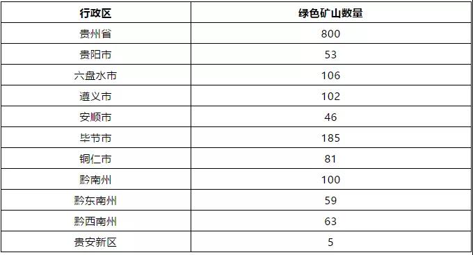 貴州省2020年綠色礦山建設任務分解表