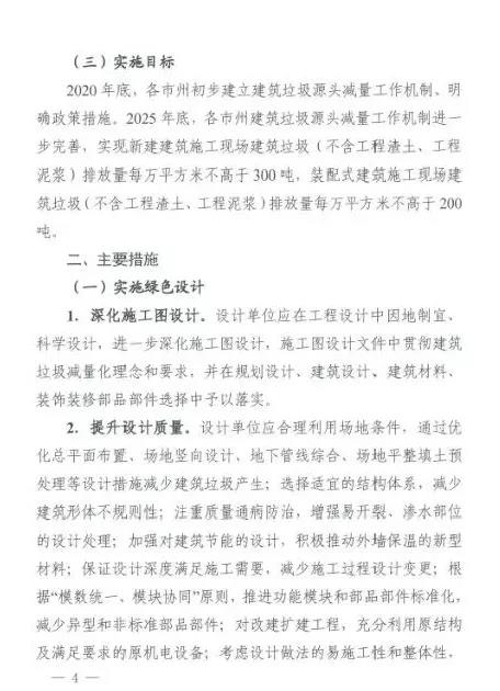 《實施方案》明確了湖南省建筑垃圾源頭減量工作實施目標,2020年底,各市州初步建立建筑垃圾源頭減量工作機制、明確政策措施。2025年底,各市州建筑垃圾源頭減量工作機制進一步完善,實現(xiàn)新建建筑施工現(xiàn)場建筑垃圾(不含工程渣土、工程泥漿)排放量每萬平方米不高于300噸,裝配式建筑施工現(xiàn)場建筑垃圾(不含工程渣土、工程泥漿)排放量每萬平方米不高于200噸。
