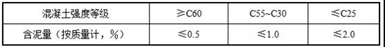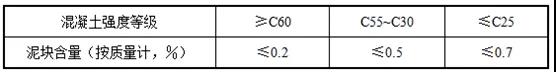 對于有抗凍、抗滲或其他特殊要求的混凝土,其所用碎石或卵石中含泥量不應大于1.0%。當碎石或卵石的含泥是非黏土質的石粉時,其含泥量可由上表的0.5%、1.0%、2.0%,分別提高到1.0%、1.5%、3.0%。