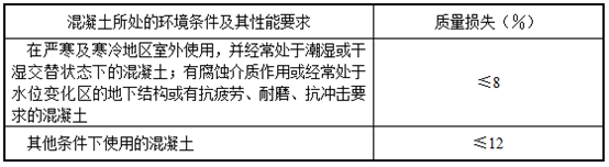 碎石或卵石的堅固性應用硫酸鈉溶液法檢驗,其質量損失應符合下表規定。