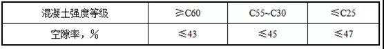 碎石或卵石表觀密度應不小于2600kg/m3。連續級配松散堆積空隙率應符合下表規定: