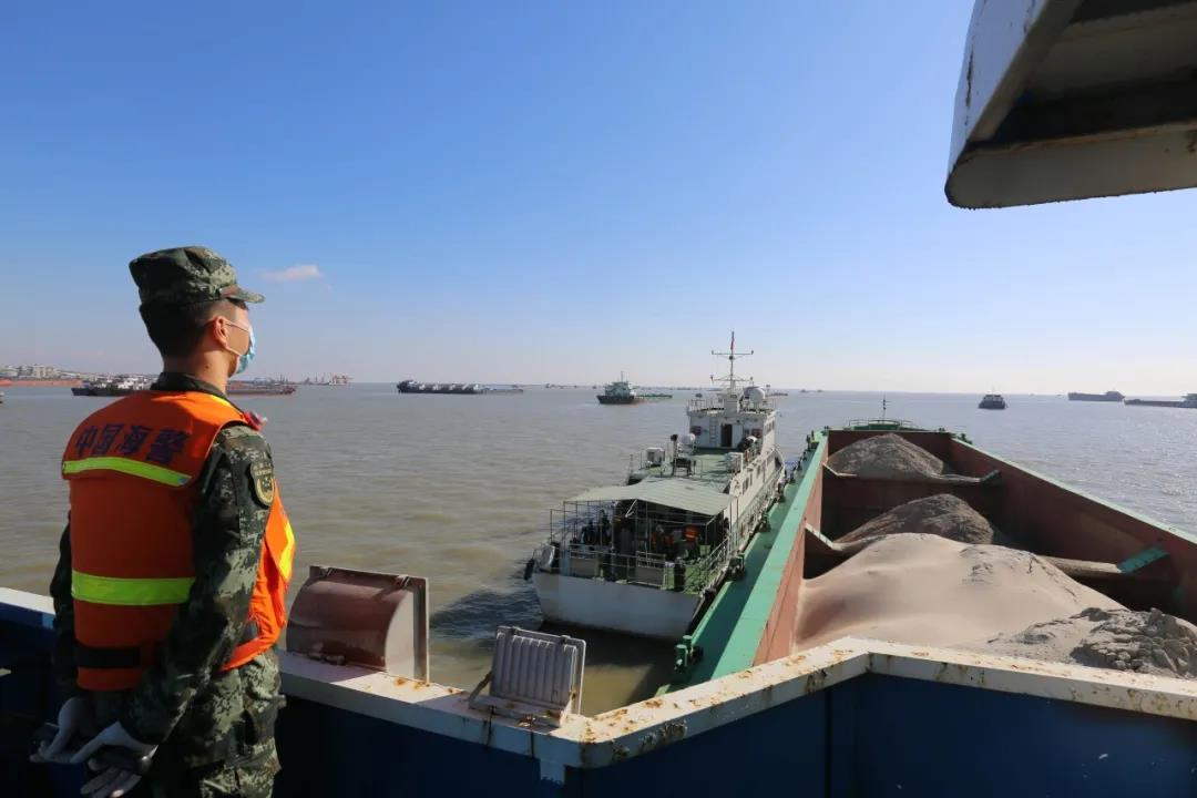 13時許,海警執法員在長江北支水道以北附近海域再行鎖定一艘涉嫌非法運輸海砂船舶,并立即前往進行查緝。經過2個多小時的追緝,海警執法員成功發現嫌疑船舶并對其依法進行了檢查,現場查獲來源不明海砂約1.5萬噸,同樣無法提供相關合法手續。目前,2起案件的嫌疑船舶和涉案人員均已被海警執法員控制,案件正在進一步偵辦中。