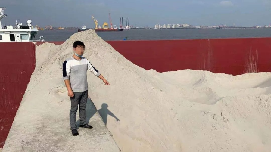 當日9時許,江蘇蘇州海警局執勤艦艇在長江北支水道以北附近海域發現一艘行跡可疑的船舶。海警執法員隨即將其叫停并依法開展檢查。經查,該船艙內裝載海砂約9000噸,且無法提供采砂相關的合法手續。