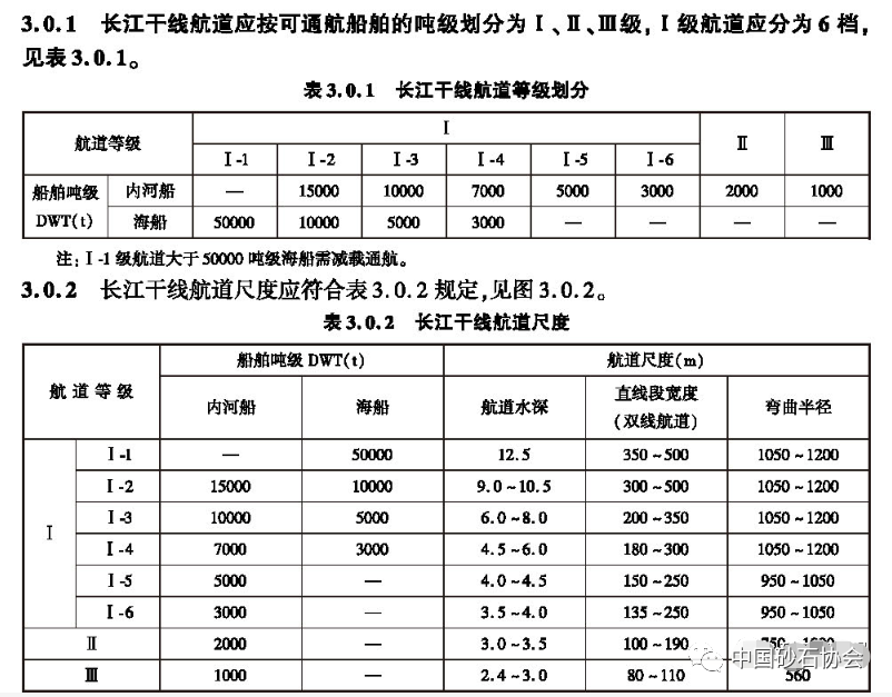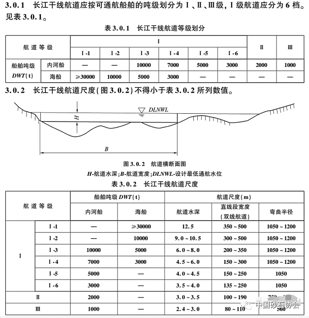《長江干線通航標準》(JS180-4-2015) 對航道的相關規定