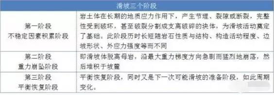 邊坡滑坡活動是在多種應力作用下,巖體從變形最終演變為崩落的現象,整個過程可分為三個階段: