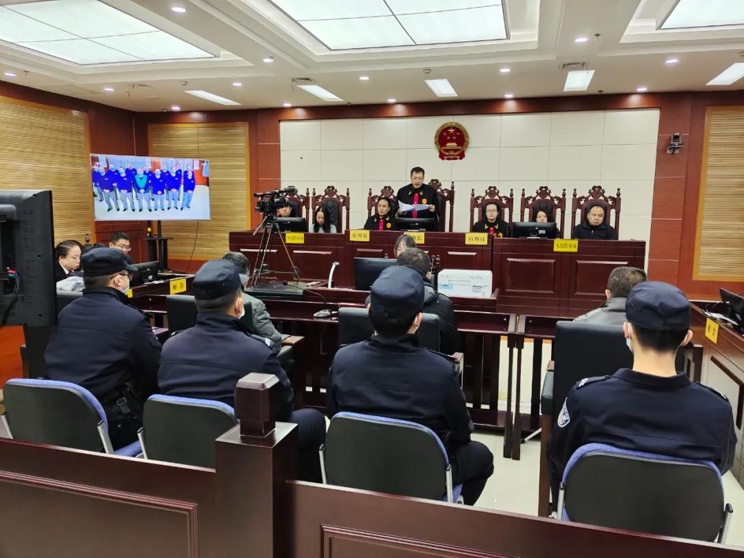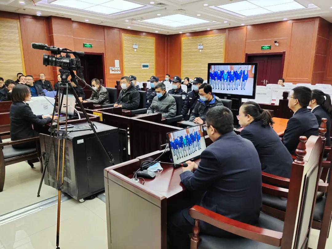 本案涉案人數多、證據繁雜,判決書長達500頁,25萬余字。按常態化疫情防控工作要求,大武口區人民法院通過與看守所視頻連線的方式,向被告人進行了宣判,并通過戶外電子大屏幕,對外直播了宣判過程。