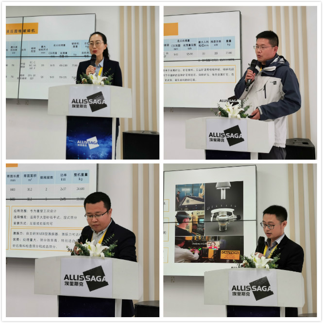 發布會最精彩的環節是埃里斯克四位來自研發、技術和應用的年輕專家,用他們獨特的方式介紹了四款新產品的設計理念、產品特點和性能優勢等方面內容,獲得在場專家、客戶、嘉賓的一致好評。會后,還進行了埃里斯克自主研發的破碎機智能控制系統(CIS系統)的模擬演示,也將會場氣氛推向高潮。