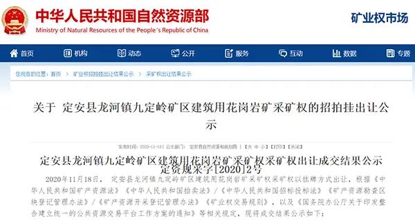 日前,廣東省潤豐科技投資有限公司以126500萬元的價格成功拍得海南定安縣龍河鎮九定嶺礦區建筑用花崗巖礦。據成交價格計算,該礦權拍賣單位成本為近51元/方。