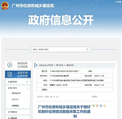 廣州市住房和城鄉建設局關于做好機制砂應用情況數據采集工作的通知