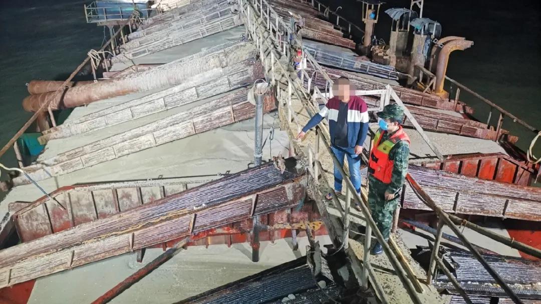 近日,福建寧德海警局在轄區海域查獲1起涉嫌非法采礦案,查扣涉案船舶1艘、涉案海砂約3000噸,抓獲涉案嫌疑人9名。11月27日20時許,福建寧德海警局執法艇在福鼎南鎮附近海域巡邏時,發現一艘鋼質砂船,該船的船名有油漆掩蓋痕跡。發現可疑跡象后,海警執法艇立即拉響警笛,驅船逼近,喊話亮明執法身份,并依法靠幫登臨檢查。經查,該船為自吸自卸式砂船,船上裝載海砂約3000噸,且船上人員無法提供所運海砂的相關合法手續,涉嫌非法采礦。隨后,海警執法員依法查扣了該船。