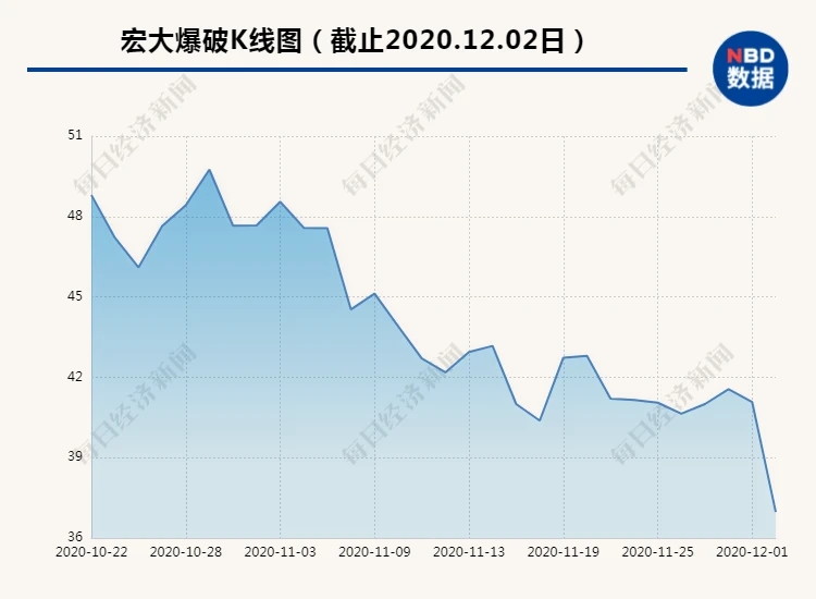 如此備受矚目的項目卻最終折戟。12月2日,宏大爆破一字跌停,收報36.97元/股。